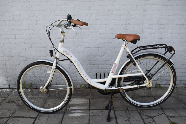 Leuke damesfiets met Shimano Nexus 3 versnellingen, handremmen, Axa frameslot, nieuwe shifter, handvatten, zadel, batterij verlichting en bel. Frame maat 53 cm wiel maat 26 inch.
