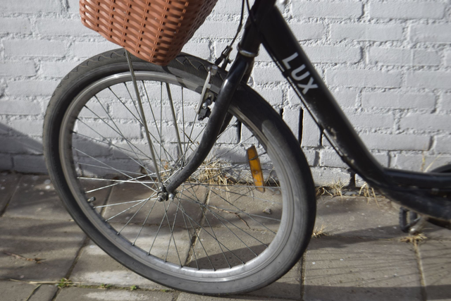 OUTLET damesfiets met knijpremmen, batterij verlichting en mand. Frame maat 43 cm wiel maat 26 inch. OUTLET fiets gaat zo mee geen garantie.