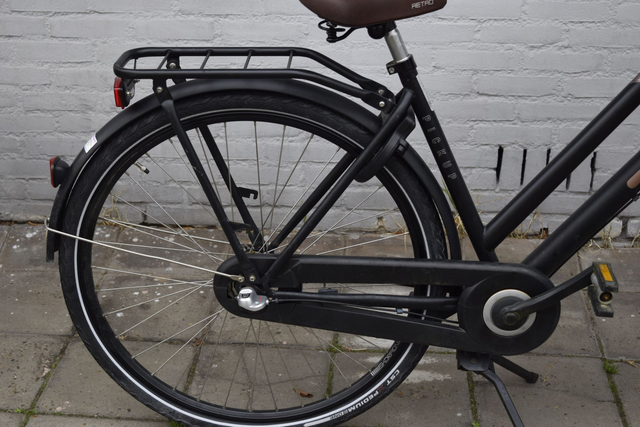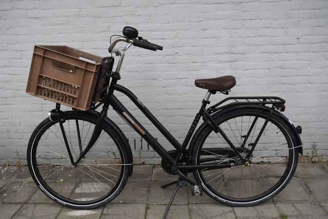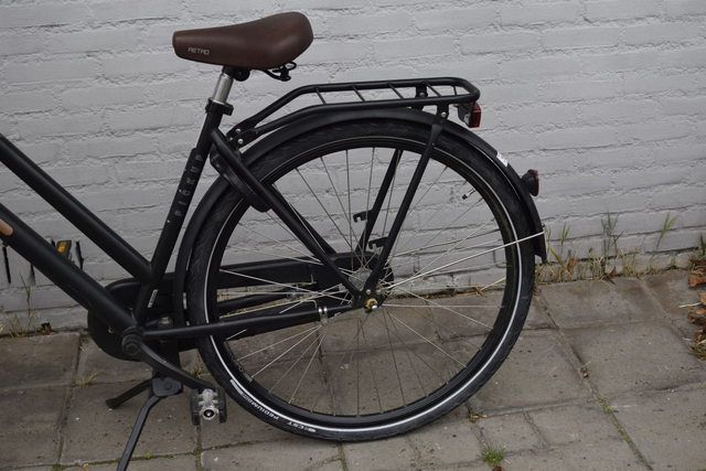Leuke damesfiets met Shimano Nexus 3 versnellingen, terugtraprem, voordrager met krat, stuurvergrendeling, frameslot, dubbele standaard, nieuwe banden, zadel, shifter en batterij verlichting. Frame maat 50 cm wiel maat 28 inch.