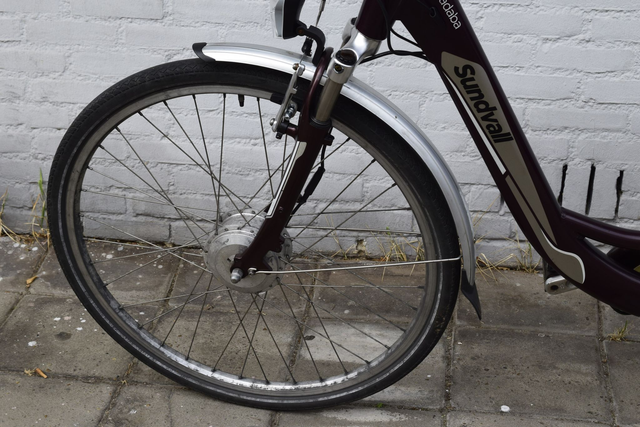 Mooie elektrische fiets met voorwielmotor, Shimano Nexus 3 versnellingen, knijpremmen, vork vering, zadel vering, pompje, frameslot, nieuwe accu, banden, remblokken en zadel. Frame maat 51 cm wiel maat 28 inch.